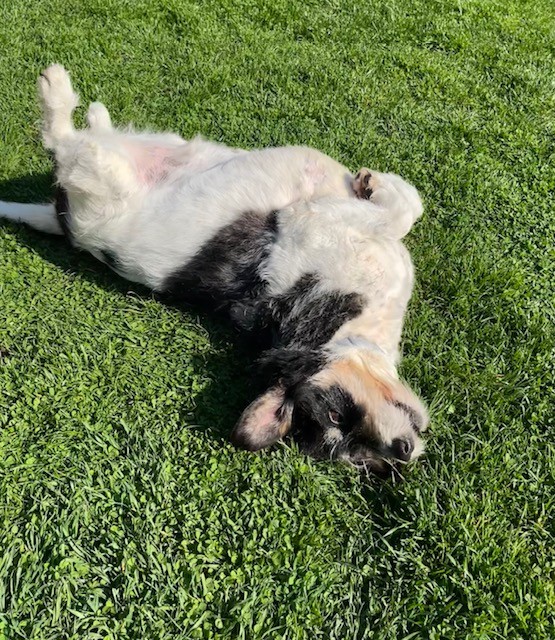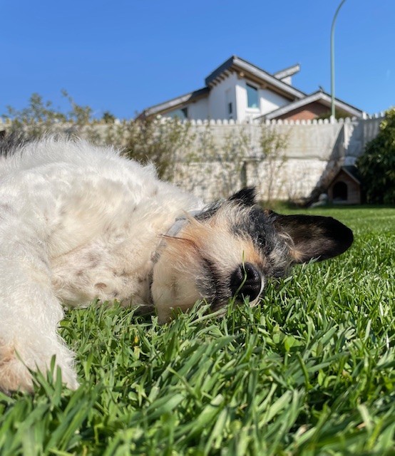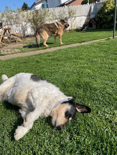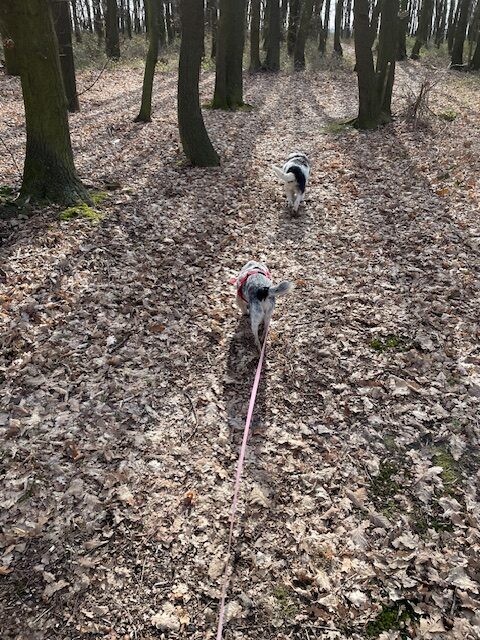 Foltina ist gut abrufbar und läuft in der Natur ohne Leine. Gemäßigte Spaziergänge machen ihr viel Spaß, richtig glücklich ist sie aber, wenn sie von einem ruhigen Plätzchen im Garten das Geschehen beobachten und chillen kann.