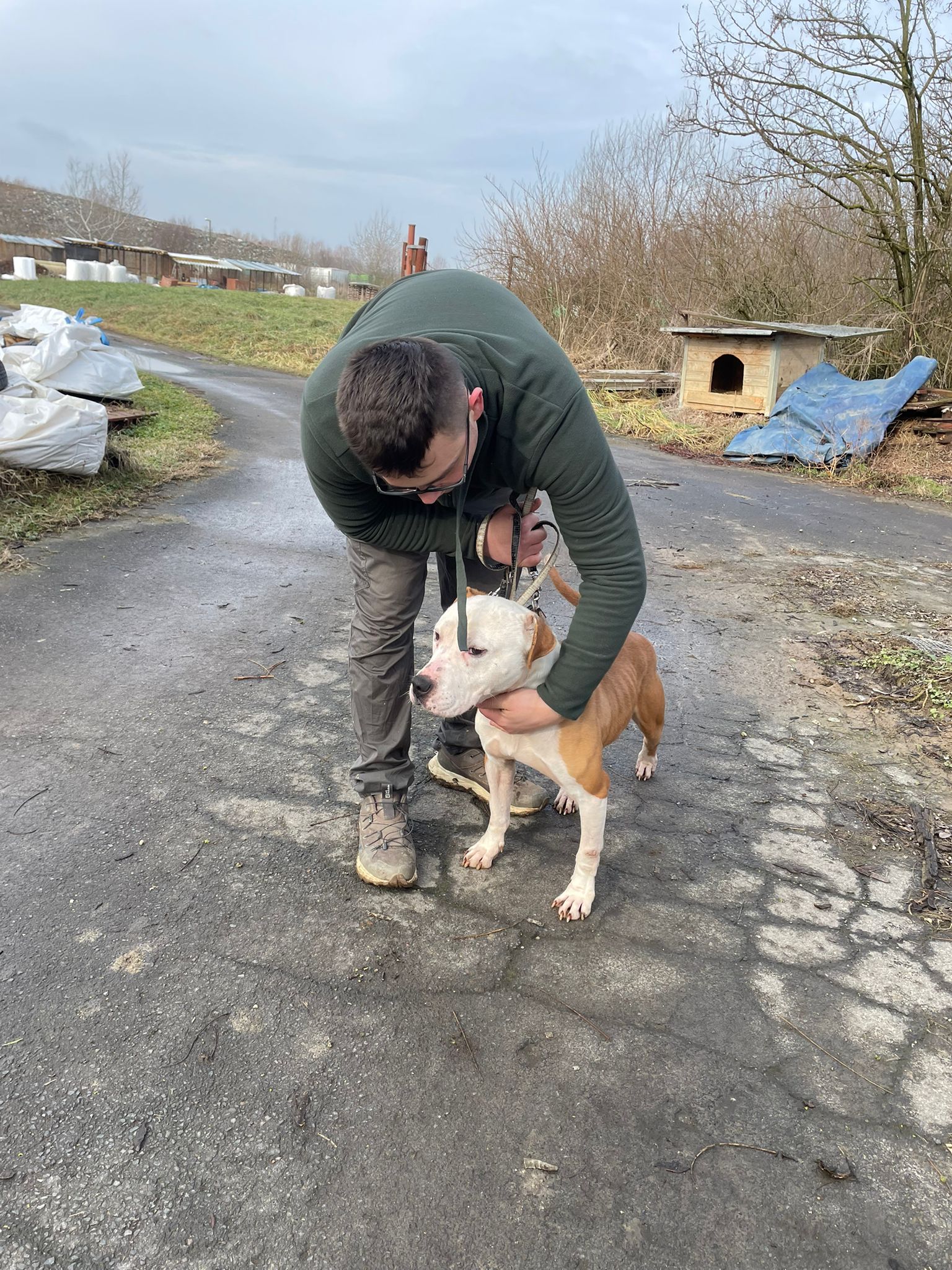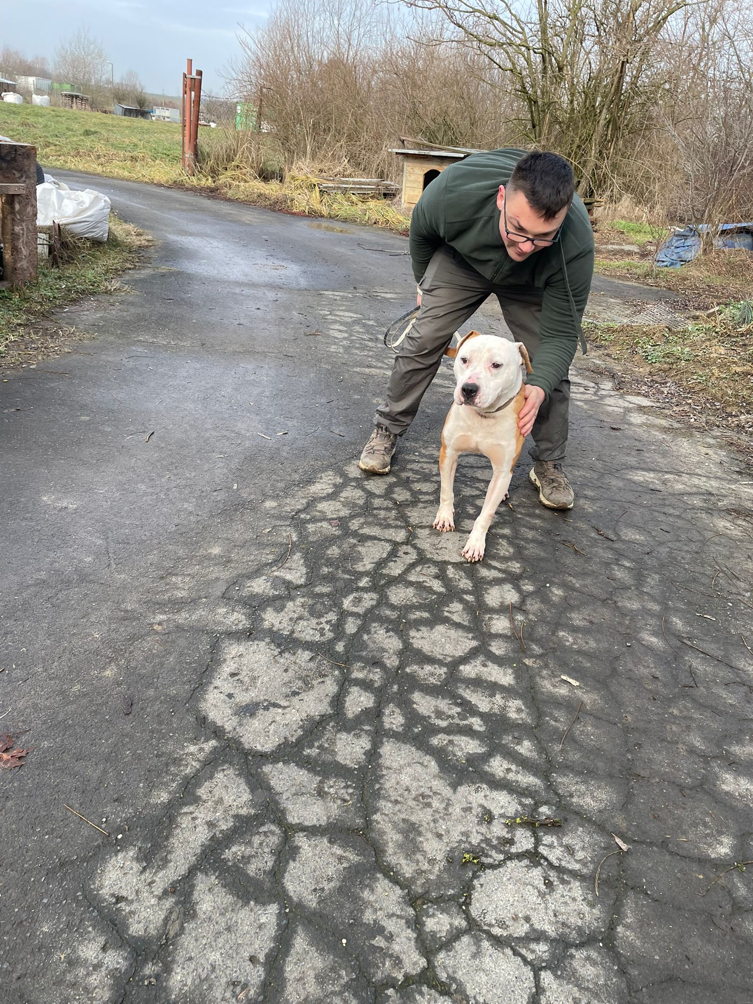 Kuba ist ein Staff-Mix, der sich Menschen gegenüber sehr lieb und zutraulich zeigt. Er ist ein durchaus freundlicher Rüde und aufgeschlossener Rüde. Das Laufen an der Leine kennt er bereits. Mit anderen Hunden hat er jedoch Schwierigkeiten. Er hat keine Angst vor ihnen, zeigt sich bei Hundebegegnungen an der Leine jedoch teilweise aggressiv. In der Station lebt er daher nicht mit anderen Hunden zusammen.