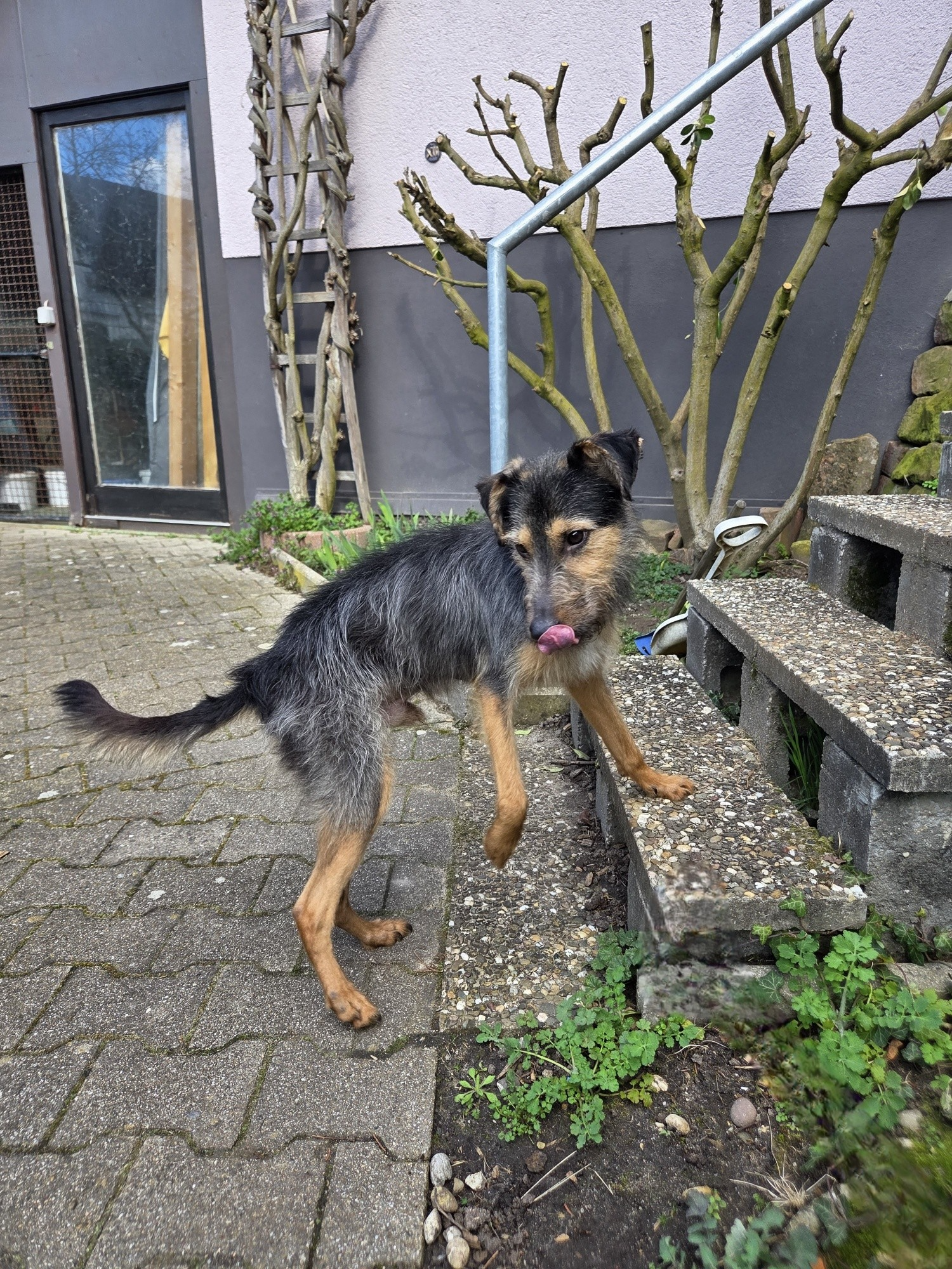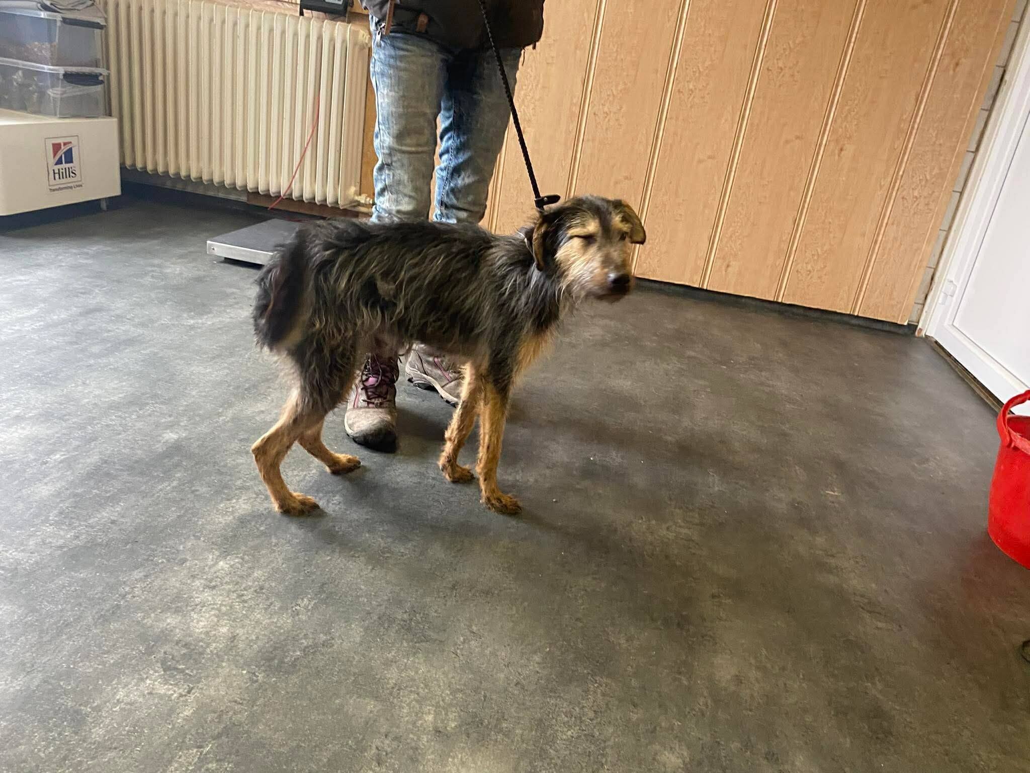 „Tüske ist gut auf seiner Pflegestelle angekommen. Als erstes ist aufgefallen: Das auf den Fotos borstig wirkende Fell ist wie zartes Babyhaar. Darunter verbirgt sich ein ebenso zartes Körperchen und eine ebenso zarte Seele. In der ersten Ankommphase war Tüske gegenüber den Menschen zurückhaltend, aber nicht übermäßig ängstlich. Zu den vorhandenem Hunden fand er gleich Kontakt, war und ist ihnen gegenüber stets freundlich und in keiner Weise dominat. An ihnen orientiert er sich stark. Inzwischen schenkt er der Pflegefamilie sein Herz und sein Vertrauen und traut sich phasenweise locker auch mit den Menschen zu spielen. Kuscheleinheiten, die bis jetzt nicht aktiv einfordert werden, werden inzwischen aber dankbar angenommen und genossen. Überraschend war, dass Treppen -in Begleitung seiner 4beinigen Kollegen – von Anfang an kein größeres Problem darstellten. Bei den auf dem Grundstück lebenden Pferden hält er noch immer Sicherheitsabstand. So wie es ihm sein Kollege gezeigt