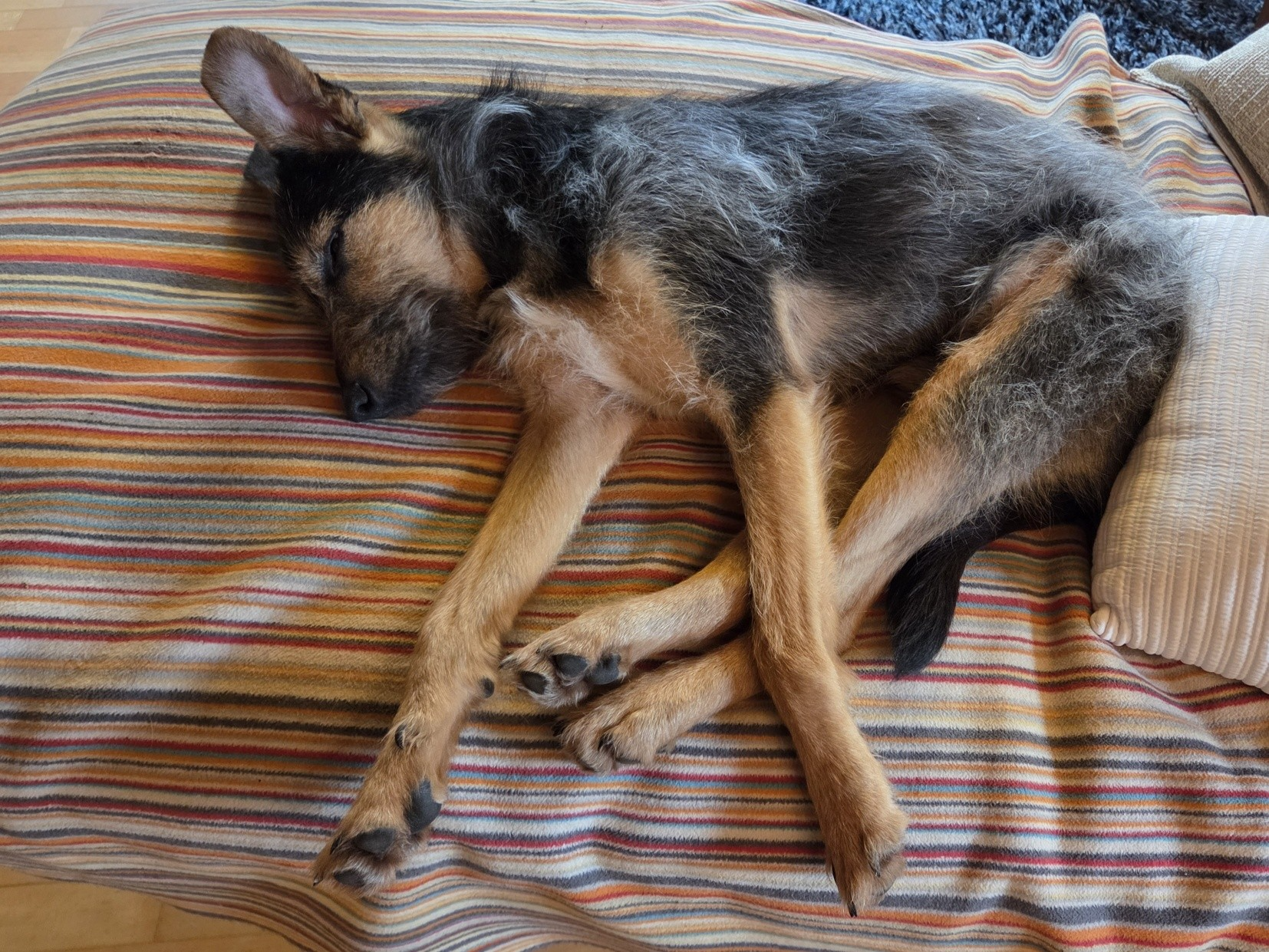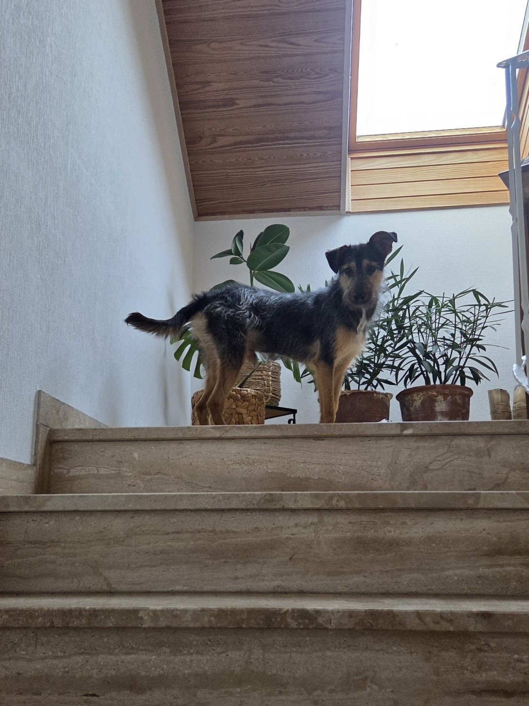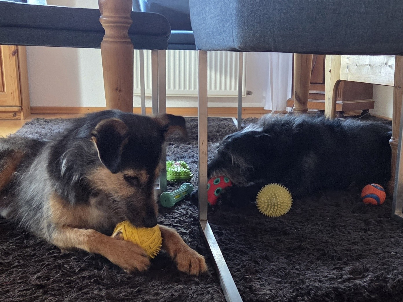 Völlig befreit ist er inzwischen ein eigenständiges Kerlchen, hat sich aus dem Schatten von Zeus gelöst uns braucht nur liebe Leute um sich rum. Ein Zweithund wäre toll zum Spielen, ist aber entgegen der ersten Einschätzung nicht zwingend notwendig.