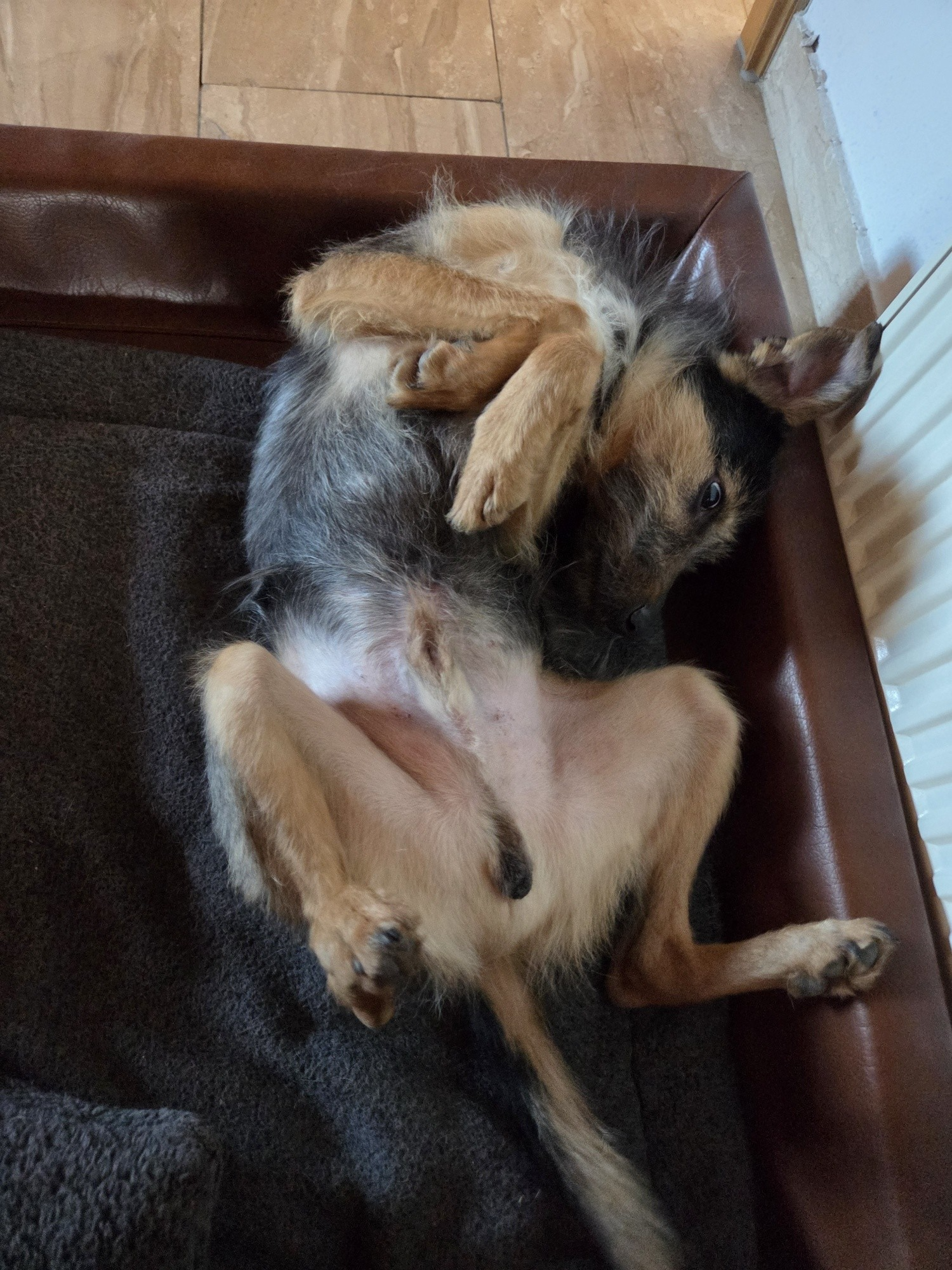 Die Pflegfamilie äußert sich nur positiv. Stubenrein, so gut wie kein Bellen, läuft gut an der Leine, lernwillig, freundlich zu Mensch und Tier, brav im Homeoffice, einfach nur gut. Zugenommen hat Tüske auch, aber bleibt wohl weiterhin mit seinen 14,5 kg ein zartes und dadurch gut händelbares Kerlchen.